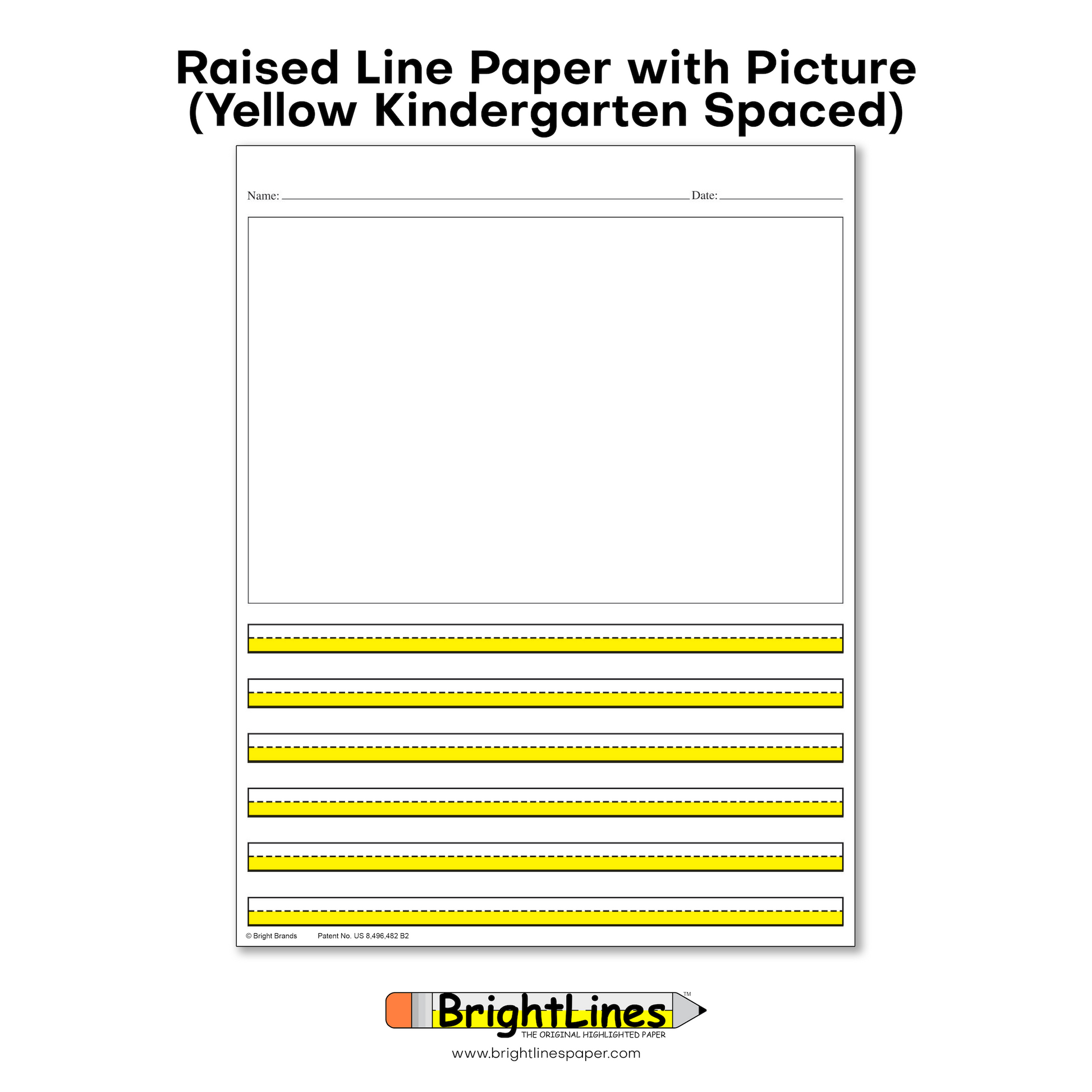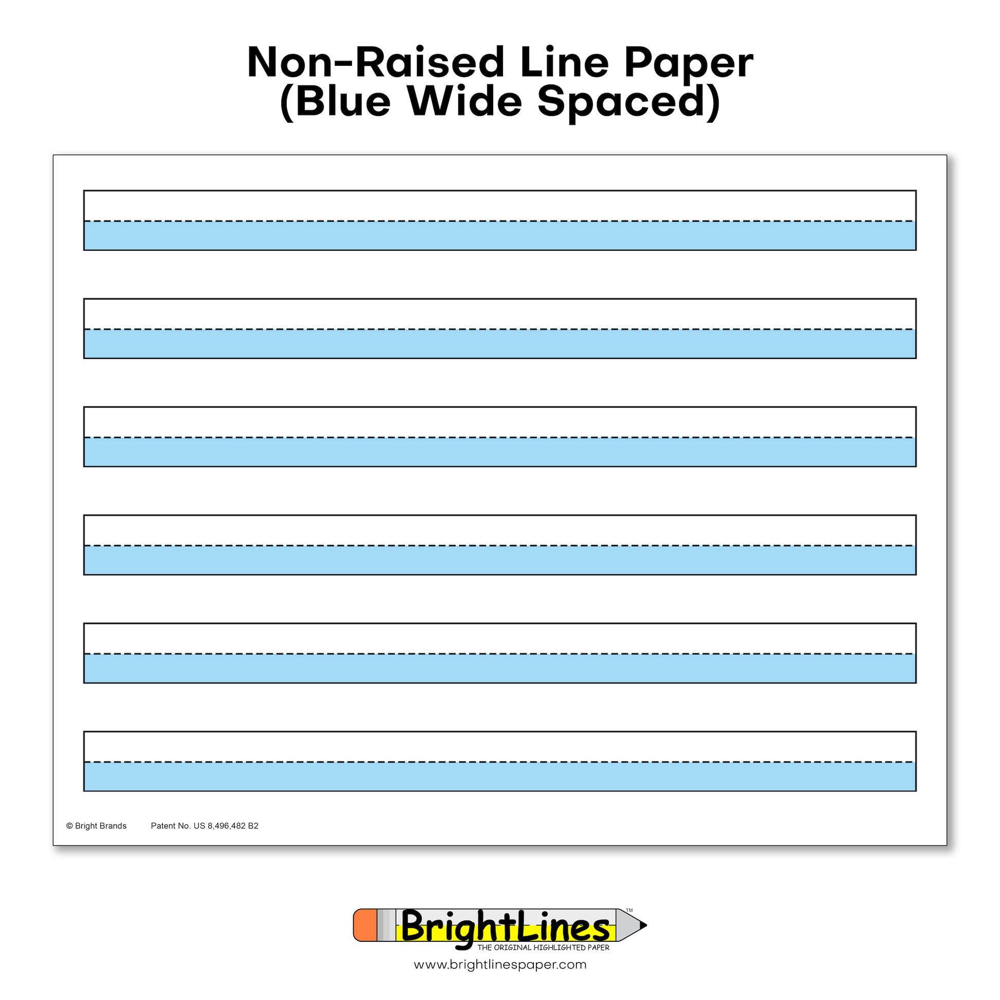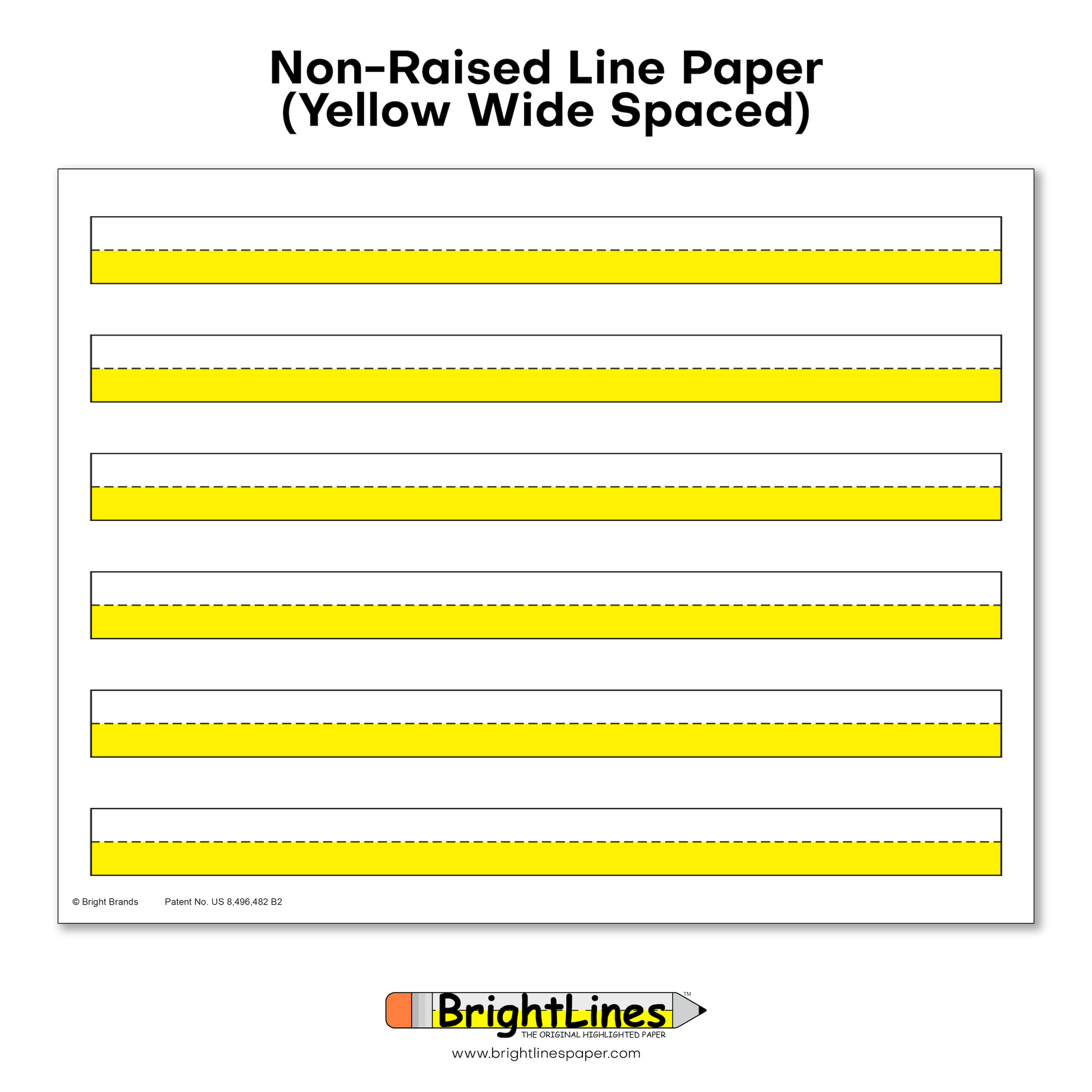 Since BrightLines Paper is simplified visually, the individual is able to form letters correctly with adequate space between words. The lower half of the writing area has been emphasized with yellow or blue color and indicates where the lower case letters should be placed.